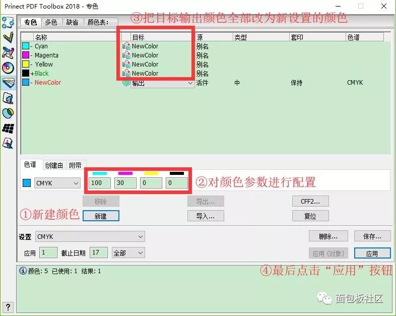 3、選擇“Color Editor專(zhuān)色”之后,會(huì)彈出如下對(duì)話框,按照下圖步驟配置