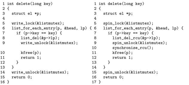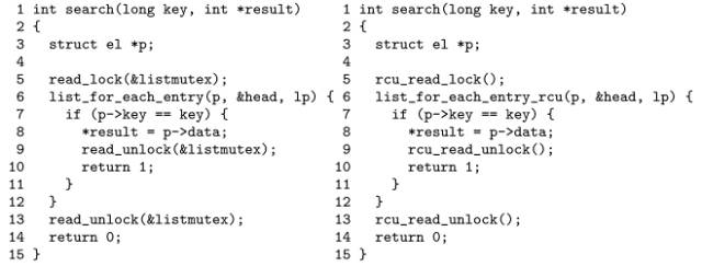 將讀寫鎖轉(zhuǎn)換成RCU非常簡單,如下: