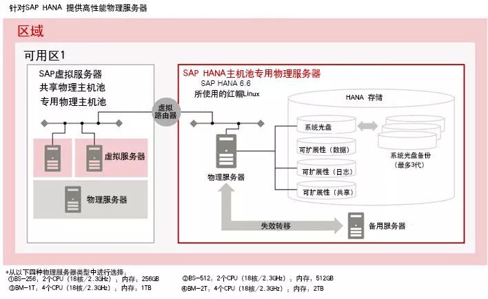 圖2:在K5專用物理服務(wù)器上所用SAP HANA實(shí)例。以物理方式將提供各項(xiàng)服務(wù)的實(shí)際服務(wù)器、提供失效轉(zhuǎn)移支持的備用服務(wù)器、以及高性能分析應(yīng)用軟件存儲(chǔ)結(jié)合在一起,從而可以在K5上實(shí)現(xiàn)高性能和高可用性。