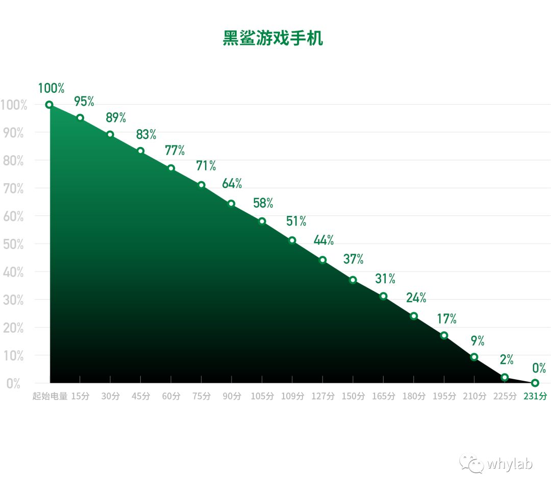 一直玩游戲到?jīng)]電,而且還是目前最火的游戲,我們自認(rèn)為這是對游戲手機(jī)最直接的考驗了。但最后的結(jié)果其實跟之前常規(guī)的 5 小時續(xù)航測試并沒有很大的出入,黑鯊還是要更熱,耗電也更快。