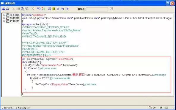 //messageif ( xRet == IDYES )//confirm operate{SetTagWord("DisplayValue",