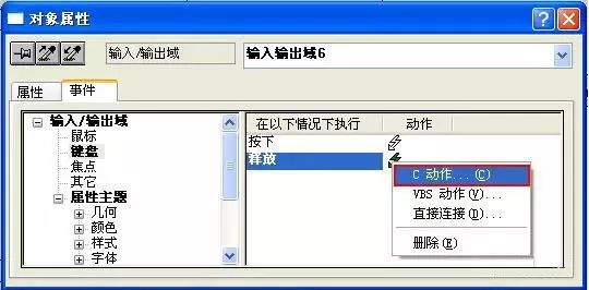 3.2鍵盤釋放動作設(shè)置選擇同一個輸入/輸出域,打開屬性對話框。選擇事件?鍵盤?釋放,在動作部分點擊鼠標右鍵,如下圖所示:
