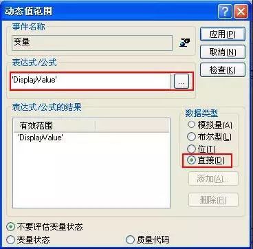 打開動態(tài)對話框。選擇需要控制的變量(本例中變量為:DisplayValue),并配置數(shù)據(jù)類型。如下圖所示: