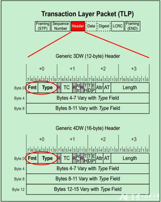 那么PCIe中是如何來(lái)判斷TLP的類型的呢?又是如何判斷其為Request還是Completion的呢?實(shí)際上是通過(guò)TLP Header的Format和Type部分來(lái)確定的,如下圖所示: