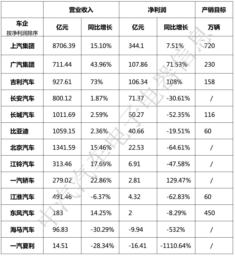 十三大主要車企2017年業(yè)績(jī)及2018年目標(biāo)