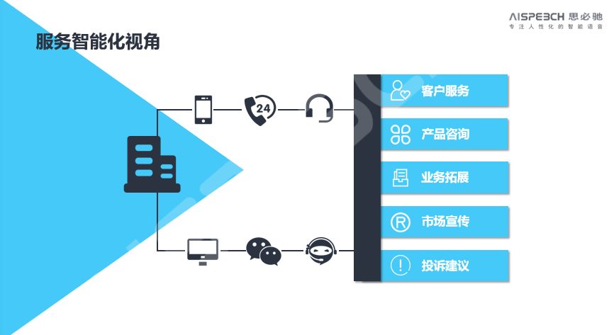 而從企業(yè)視角考慮,則是更多關(guān)注如何提高服務(wù)智能化的能力。人工智能語(yǔ)音交互為企業(yè)提供了新的服務(wù)渠道,只有生活智能化與服務(wù)智能化相匹配,我們的未來(lái)才是真正的所謂的智能時(shí)代。