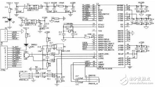 2.2 VS1003音頻解碼控制電路