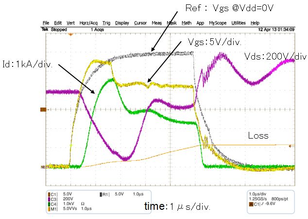 ? Vds=1650 V,Id=354 A,fo=20 Hz,fc=1 kHz條件下1500小時(shí)的開關(guān)試驗(yàn)。