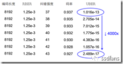 相同的ECC編碼長度和保護(hù)強(qiáng)度,RBER越低,UBER也在降低,呈指數(shù)降低。