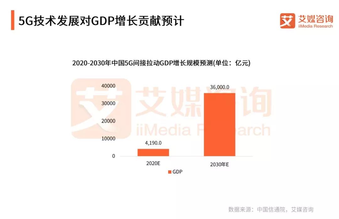 2020年,5G間接拉動GDP增長預(yù)計(jì)將超過4190億元;2030年,5G間接拉動GDP預(yù)計(jì)將增長到3.6萬億元。