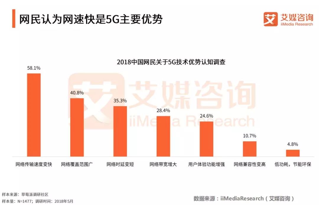 iiMediaResearch(艾媒咨詢)數(shù)據(jù)顯示,58.1%的中國受訪網(wǎng)民認(rèn)為5G網(wǎng)速快是其主要優(yōu)勢,40.8%的受訪網(wǎng)民更青睞于5G網(wǎng)絡(luò)覆蓋范圍廣的優(yōu)勢,另有接近三成的受訪網(wǎng)民看好網(wǎng)絡(luò)時延變短、帶寬增大等優(yōu)勢。