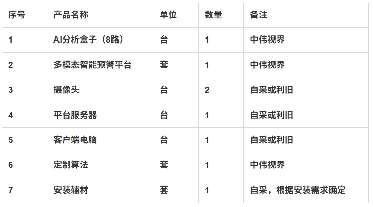 (項(xiàng)目前期至少需要客戶提供1000張以上樣本,含正常狀態(tài)及異常狀態(tài),用來形成初步算法,后續(xù)根據(jù)運(yùn)行情況提供新的樣本素材,我方負(fù)責(zé)免費(fèi)升級(jí)至AI盒子信息包內(nèi)。)
