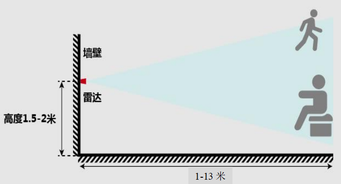 這是面向大空間應(yīng)用的遠(yuǎn)距離感應(yīng)方案。正向1-13米的感應(yīng)距離,掛高3米時(shí)可覆蓋3-5米半徑范圍,實(shí)現(xiàn)了真正的廣域感知。在高流量的公共區(qū)域,這種提前感知能力顯得格外重要。