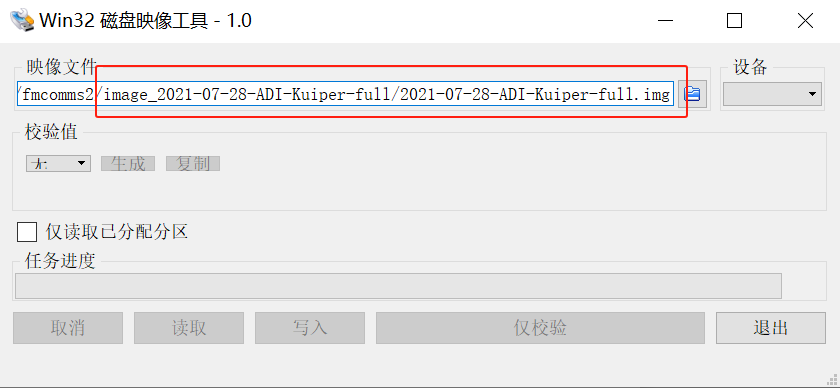 用戶需要先準(zhǔn)備一張 32G 的 SD 卡,然后用Win32 磁盤映像工具把 ADI 的鏡 像燒錄到 SD 卡中。