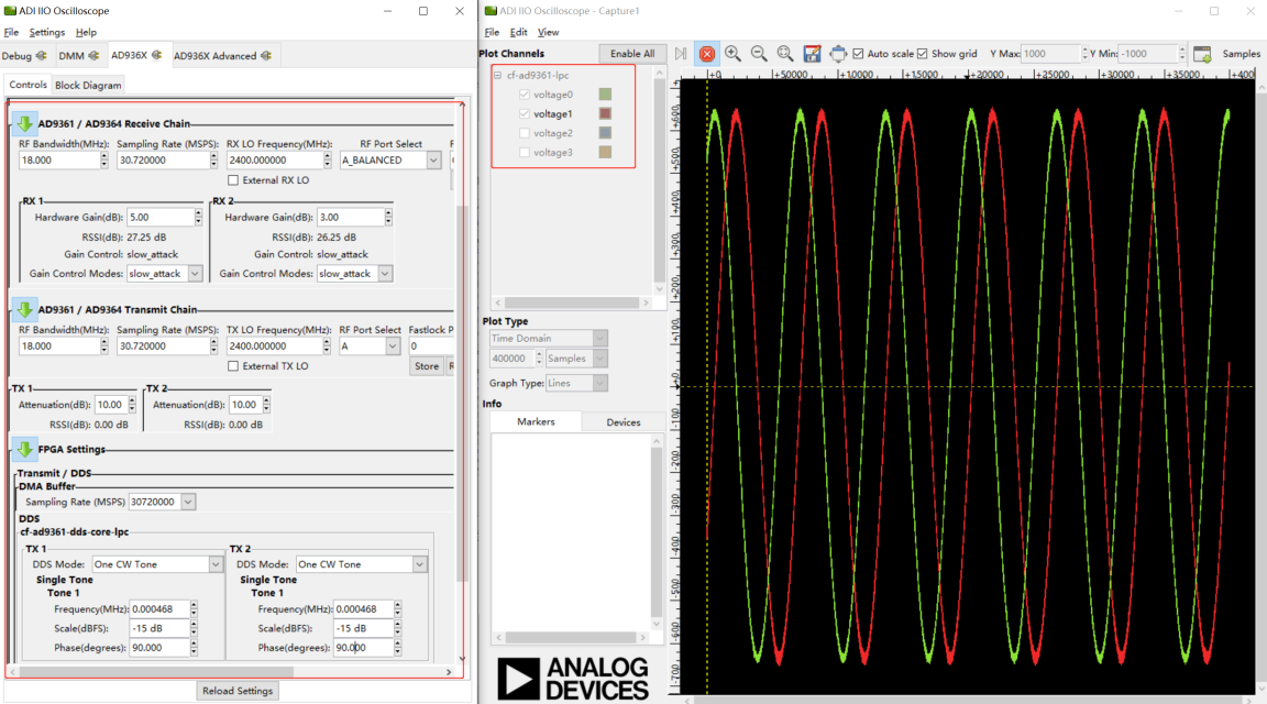 我們?cè)俅蜷_ ADI IIO Oscilloscope 軟件,進(jìn)行功能測(cè)試