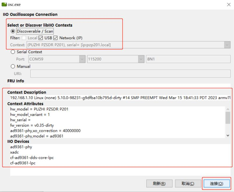 軟件會(huì)自動(dòng)連接 FMCOMMS3 板卡,如果沒有,檢查下網(wǎng)線