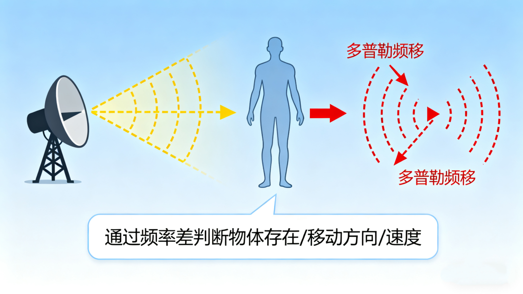 還記得救護(hù)車駛過時(shí)音調(diào)的變化嗎?當(dāng)救護(hù)車向你駛來時(shí),聲音變得尖銳;遠(yuǎn)離時(shí),聲音變得低沉。微波雷達(dá)利用的正是同樣的原理,通過檢測這種頻率變化,它就能精確地"看見"你的存在、移動(dòng)方向和速度。