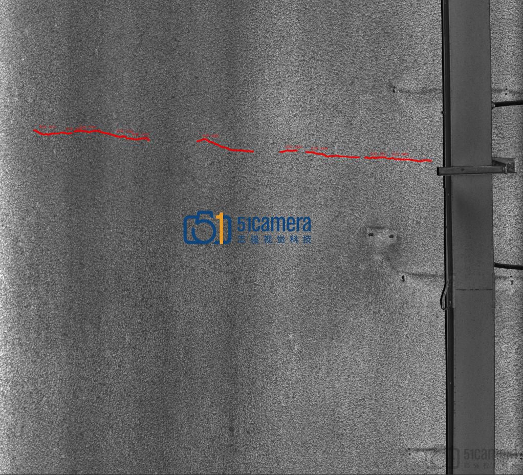 傳統(tǒng)的隧道病害檢測(cè)效率低下,成本高昂,主觀性強(qiáng),數(shù)據(jù)難以量化,檢測(cè)效果不理想。為解決傳統(tǒng)檢測(cè)的痛點(diǎn),志強(qiáng)視覺結(jié)合先進(jìn)的機(jī)器視覺技術(shù),經(jīng)過多次驗(yàn)證,推出了一套公路隧道裂縫病害檢測(cè)系統(tǒng),實(shí)現(xiàn)了從數(shù)據(jù)采集到智能分析的全流程自動(dòng)化,極大地提升了檢測(cè)的效率、精度和安全性。51camera的公路隧道裂縫病害檢測(cè)系統(tǒng)通過分辨率視覺模組對(duì)公路隧道進(jìn)行高精度成像,并通過國際先進(jìn)的深度學(xué)習(xí)算法能夠在采集的圖像中自動(dòng)識(shí)別出裂縫區(qū)域、滲漏水等缺陷。下面是京平高速大嶺后隧道的測(cè)試效果。