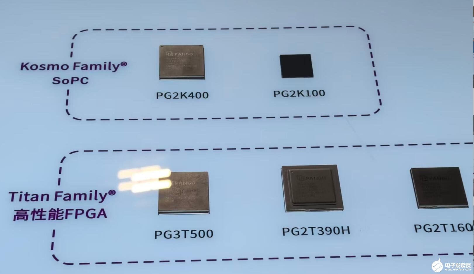圖:紫光同創(chuàng)四大系列FPGA芯片產(chǎn)品 電子發(fā)燒友拍攝