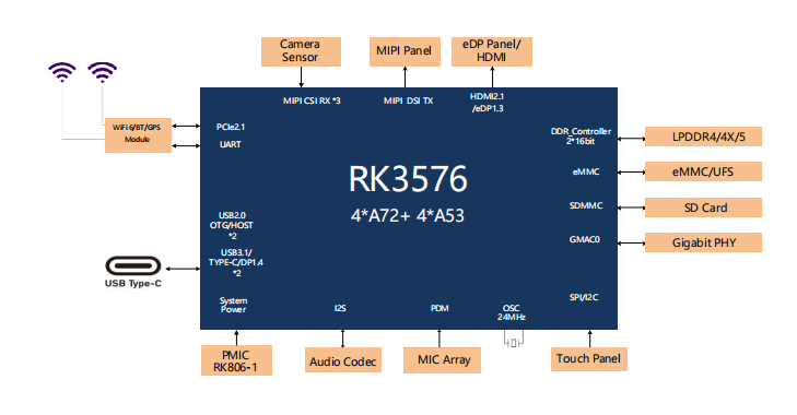 RK3576還支持PCIe2.1/SATA3.0、USB3.0等多種高速接口,方便開發(fā)者進行外設(shè)擴展和存儲升級。同時,其還集成了ARMTrustZone安全擴展和Secureboot功能,為系統(tǒng)提供了可靠的安全保障。