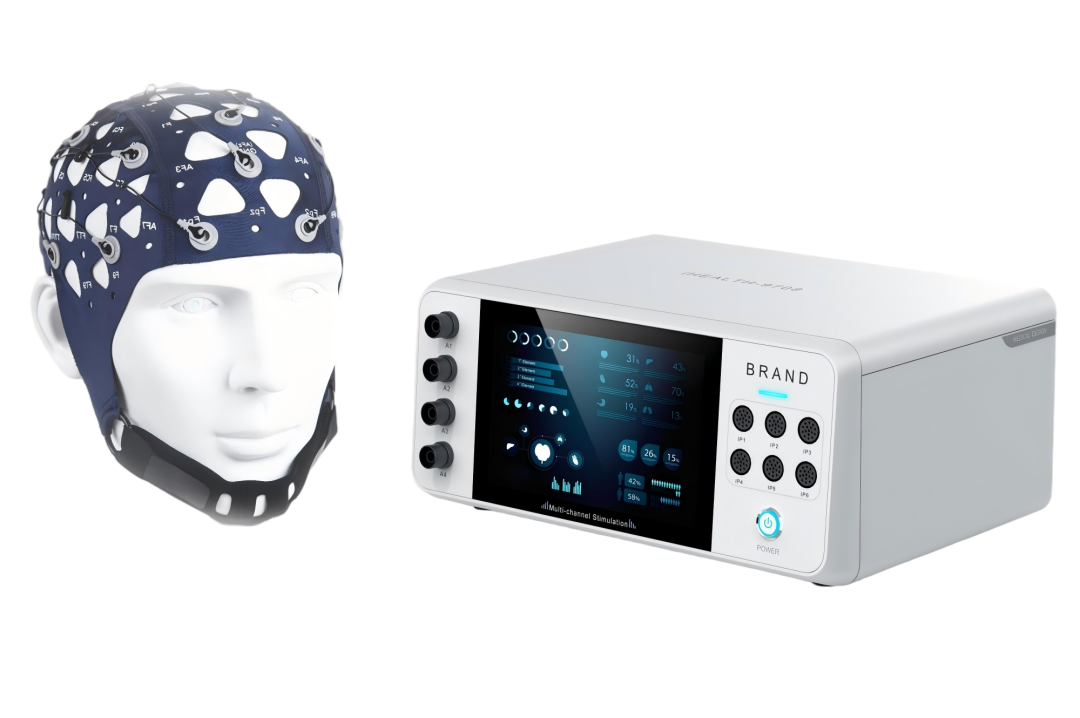 該設(shè)備采用非侵入性的10-30mA刺激電流直接刺激大腦區(qū)域,進(jìn)而刺激大腦深部的神經(jīng)核團(tuán)、改變神經(jīng)遞質(zhì)水平,影響腦電節(jié)律、改善腦區(qū)間的聯(lián)絡(luò),從而增強(qiáng)腦功能,治愈疾病。