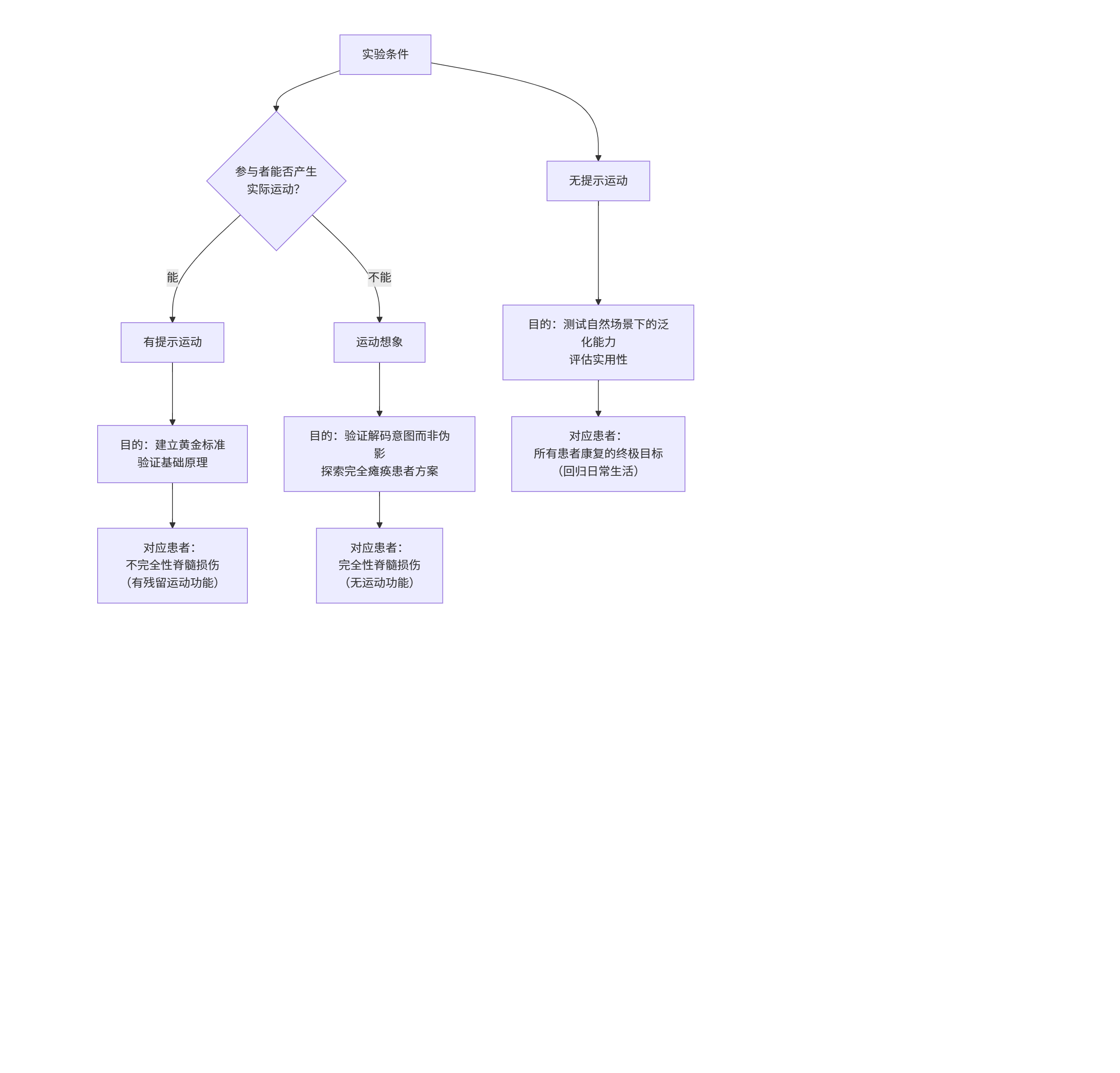 本研究成功開(kāi)發(fā)并驗(yàn)證了一種非侵入性腦脊接口系統(tǒng),能夠通過(guò)EEG解碼運(yùn)動(dòng)意圖并實(shí)時(shí)觸發(fā)tSCS。系統(tǒng)在無(wú)損傷參與者中表現(xiàn)出高于機(jī)會(huì)水平的解碼精度,且對(duì)想象和無(wú)提示任務(wù)具有一定泛化能力。盡管在自然無(wú)提示運(yùn)動(dòng)中性能下降,但通過(guò)任務(wù)特異性訓(xùn)練或想象訓(xùn)練仍具潛力。該BSI系統(tǒng)為SCI患者的運(yùn)動(dòng)康復(fù)提供了新思路,未來(lái)需進(jìn)一步優(yōu)化解碼算法、降低延遲,并開(kāi)展臨床驗(yàn)證。這個(gè)系統(tǒng)的終極目標(biāo)是:在患者想要?jiǎng)拥臅r(shí)候,立即給予脊髓刺激(tSCS)來(lái)輔助運(yùn)動(dòng),從而將“運(yùn)動(dòng)意圖”和“刺激輔助”精確同步,最大化康復(fù)效果。有提示運(yùn)動(dòng):作為性能基準(zhǔn),對(duì)應(yīng)有殘留運(yùn)動(dòng)功能的不完全性脊髓損傷患者,驗(yàn)證在理想條件下系統(tǒng)解碼運(yùn)動(dòng)意圖的能力。運(yùn)動(dòng)想象:用于排除運(yùn)動(dòng)偽影,對(duì)應(yīng)無(wú)運(yùn)動(dòng)功能的完全性脊髓損傷患者,證明系統(tǒng)可僅憑運(yùn)動(dòng)意圖驅(qū)動(dòng),為該人群提供應(yīng)用基礎(chǔ)。無(wú)提示運(yùn)動(dòng):測(cè)試自然場(chǎng)景的泛化能力,對(duì)應(yīng)所有患者康復(fù)的終極目標(biāo),評(píng)估系統(tǒng)在自主、隨意運(yùn)動(dòng)中的實(shí)用性。