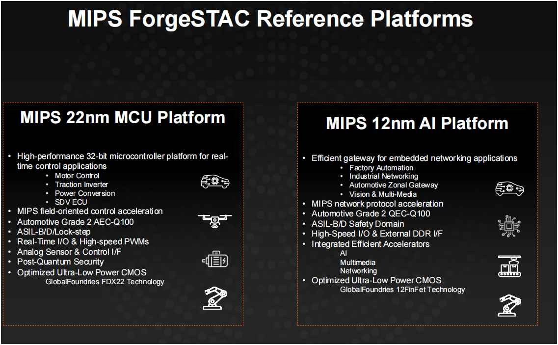 MIPS 在不同技術節(jié)點(22nm vs 12nm)上提供的兩種差異化參考平臺,分別服務于實時控制和智能連接/AI兩大市場方向。