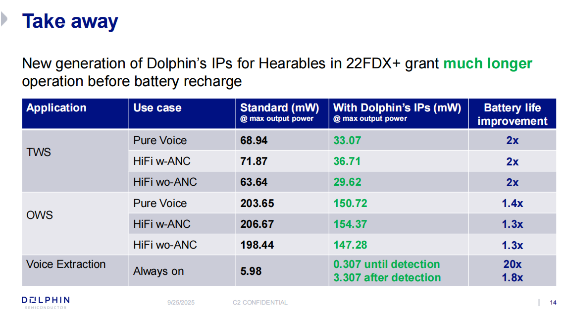 從上圖中與現(xiàn)有標準工藝對比看出來,在22FDX+的工藝上,TWS、OWS耳機等終端產(chǎn)品上,有的甚至實現(xiàn)了最高20倍的續(xù)航延長!很快就將面市的新一代的創(chuàng)新產(chǎn)品,將實現(xiàn)更長的驚人的續(xù)航時間。