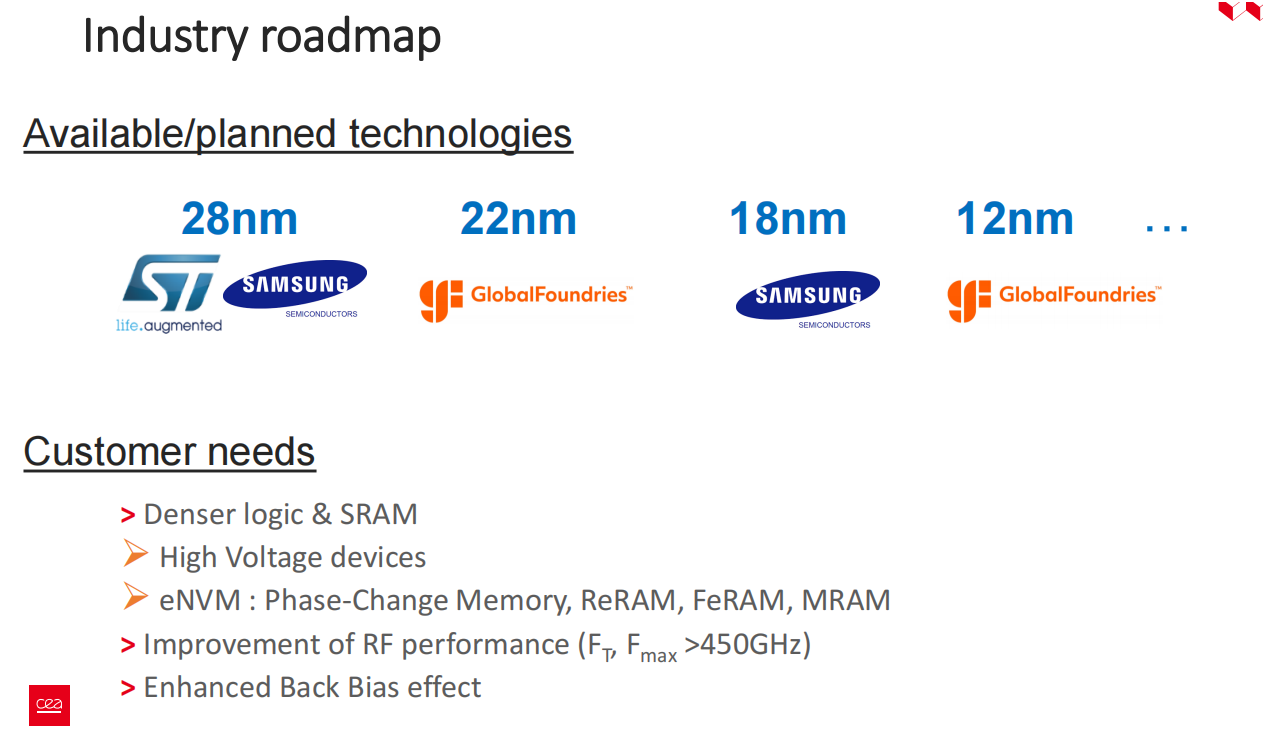 目前FD-SOI產(chǎn)業(yè)已經(jīng)可以成功實現(xiàn)從28納米到12納米的工藝。