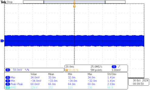 圖 2:TXN 350-115 的最大輸出電壓紋波為 150 mVp-p,這有助于緩解 EMC 問(wèn)題。(圖片來(lái)源:TRACO Power)