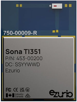 電池供電型設備監(jiān)控是另一種常見的應用,基于 [Texas Instruments] 芯片的 Ezurio Sona TI351 模塊就是為這種用例量身定做的。它采用 1×1 SISO 配置,數(shù)據(jù)速率為 86 Mb/s,并支持 TWT。該系列中的典型器件是 [453-00200C] (圖 3),它采用 M.2 1216 SMT 外形尺寸并配有片式天線。