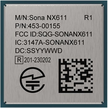 圖 4:453-00155R 傳輸速率高達 600 Mb/s,采用 SIP 封裝。(圖片來源:Ezurio)