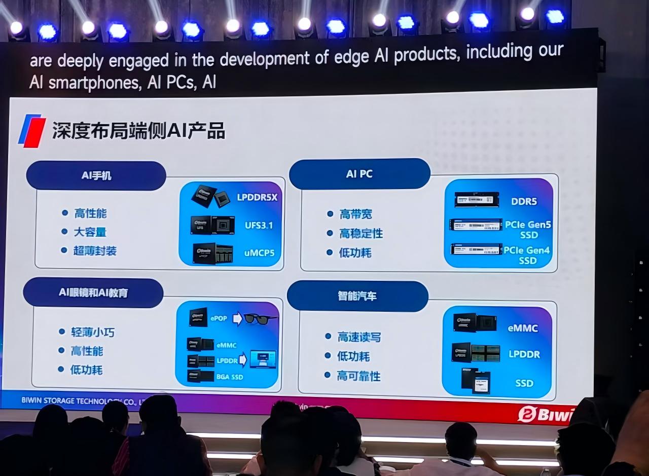 在產(chǎn)品布局上,佰維存儲(chǔ)深度布局端側(cè)AI產(chǎn)品,涵蓋AI手機(jī)、AI PC、AI眼鏡和AI教育、智能汽車等領(lǐng)域。針對(duì)AI手機(jī),提供高性能、大容量、超薄封裝的存儲(chǔ)解決方案;對(duì)于AI PC,注重高帶寬、高穩(wěn)定性和低功耗;在AI眼鏡和AI教育方面,產(chǎn)品具有輕薄小巧、高性能、低功耗特點(diǎn);智能汽車存儲(chǔ)產(chǎn)品則具備高速讀寫、低功耗、高可靠性優(yōu)勢(shì)。目前,公司智能穿戴產(chǎn)品已進(jìn)入國內(nèi)外一線客戶供應(yīng)體系,與Meta、小米、Rokid、小天才、Google、雷鳥創(chuàng)新等重要客戶合作不斷加深。