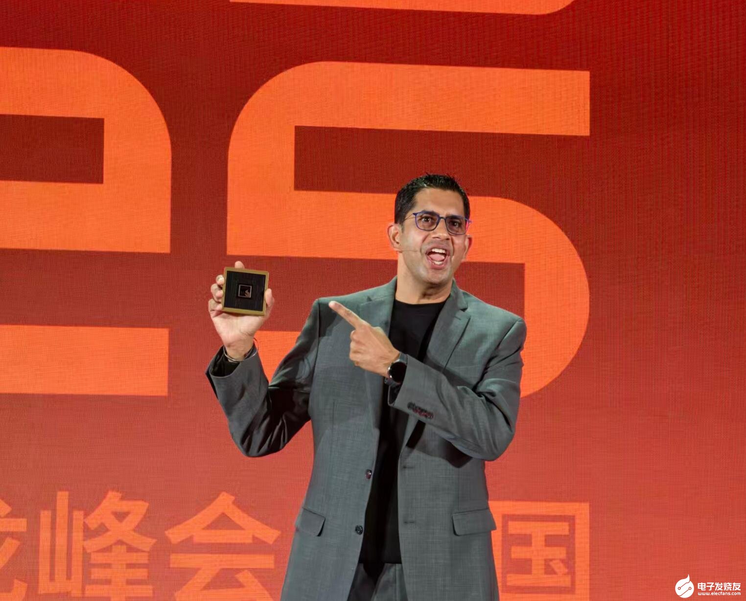 圖1:高通技術(shù)公司產(chǎn)品管理副總裁Nitin Kumar展示驍龍X2 Elite