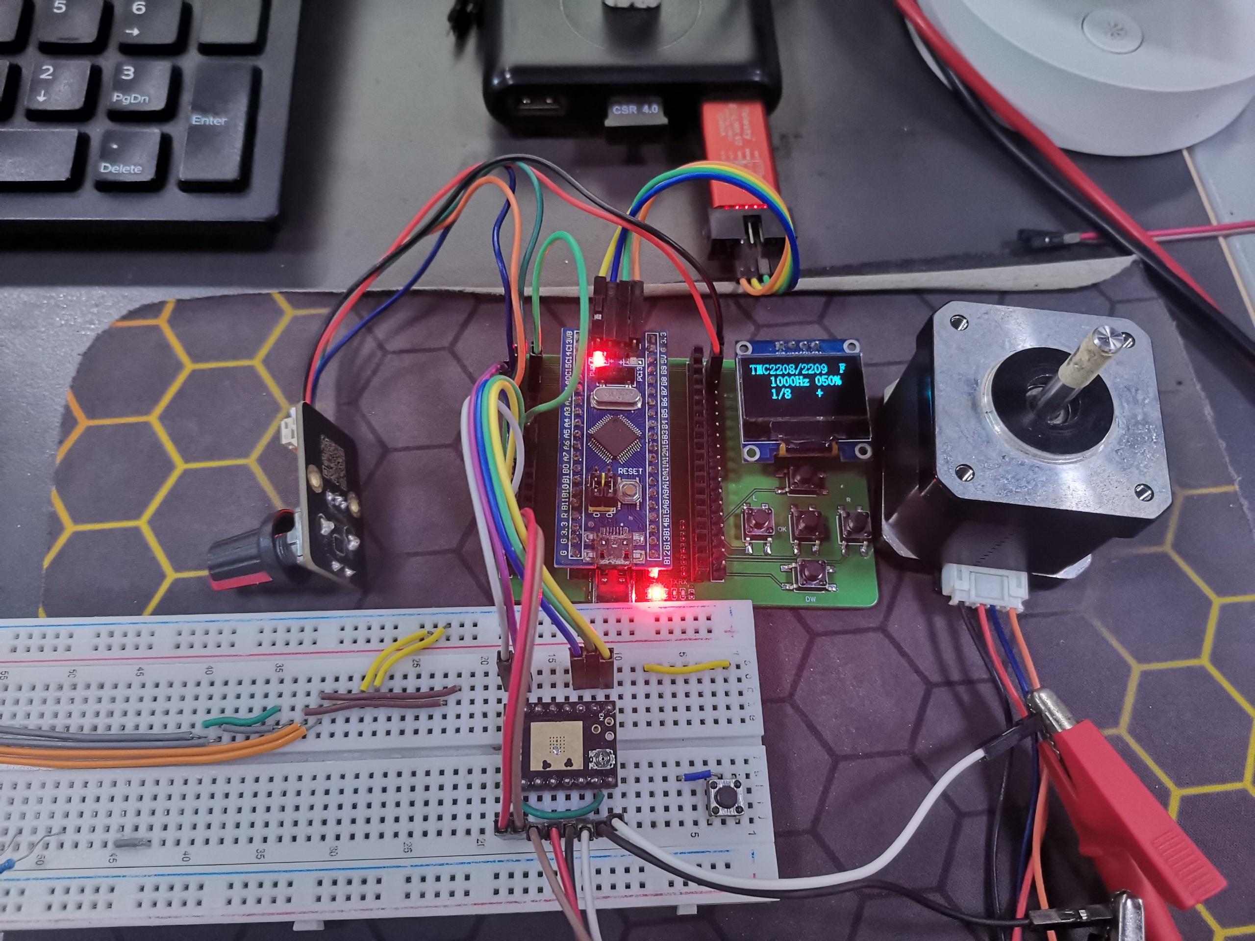 STM32F103C8T6最小系統(tǒng)板、TMC2209驅(qū)動板、EC11旋轉(zhuǎn)編碼器、OLED顯示屏、按鍵等。