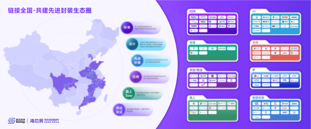 通過產(chǎn)業(yè)鏈全景圖與代表性成果展示,系統(tǒng)梳理從材料、設(shè)備、EDA工具、制造封測到下游應(yīng)用的關(guān)鍵環(huán)節(jié),直觀呈現(xiàn)產(chǎn)業(yè)鏈協(xié)作關(guān)系與要素分布,展現(xiàn)先進(jìn)封裝技術(shù)體系的整體面貌。