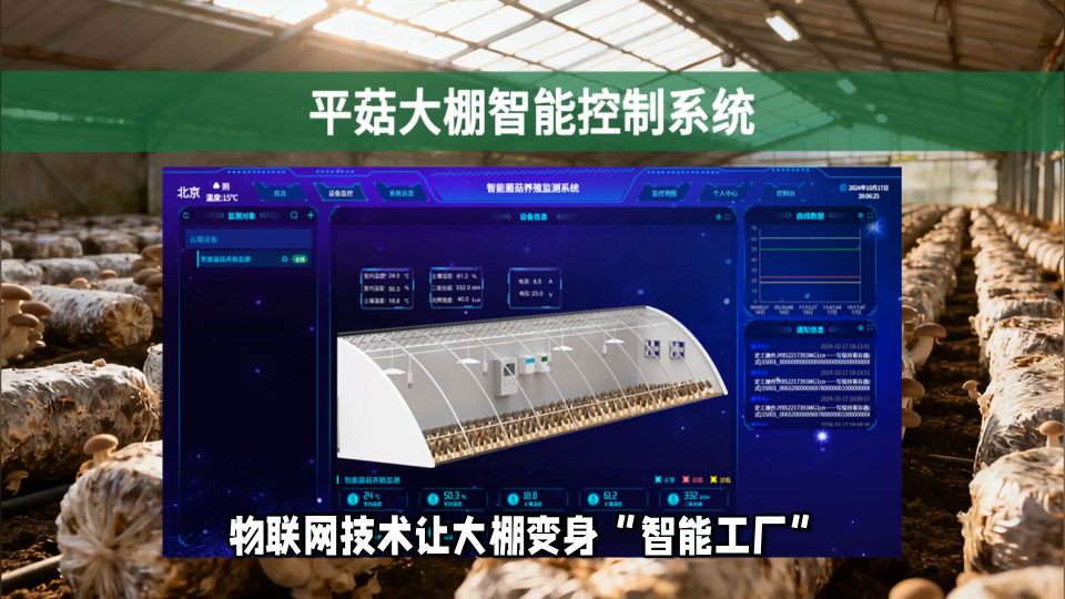 平菇作為我國種植面積廣、消費需求大的食用菌品種,其生長過程對環(huán)境參數(shù)極為敏感。傳統(tǒng)平菇大棚依賴人工巡檢調控,存在三大核心痛點:一是參數(shù)控制粗放;二是病害防控滯后;三是人工成本高。基于物聯(lián)網(wǎng)技術的平菇大棚智能控制系統(tǒng),通過多維度感知 + 云端決策 + 設備聯(lián)動模式,實時適配平菇各生長階段的環(huán)境需求,實現(xiàn)從經驗種植到數(shù)據(jù)種植的轉型,保障平菇產量穩(wěn)定、品質優(yōu)良。