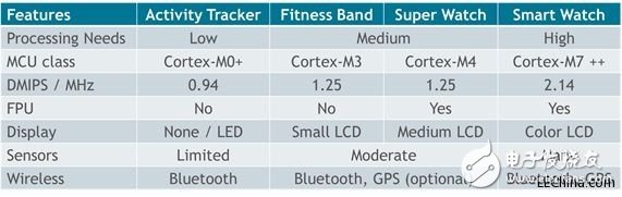 表1:ARM Cortex-M系列滿足各類可穿戴產(chǎn)品需求