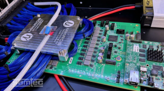 此前在2025年DesignCon上,Samtec已現(xiàn)場演示過200G共封裝通道的產(chǎn)品方案首秀| Samtec&博通:200G共封裝銅纜通道演示,該方案集成了 Samtec Si-Fly? HD共封裝銅纜系統(tǒng)與博通(Broadcom)的200G SerDes技術(shù)。