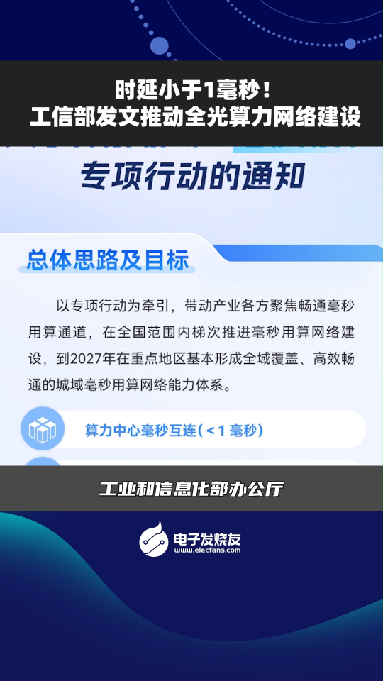近日,工業(yè)和信息化部辦公廳正式發(fā)布《關(guān)于開展城域“毫秒用算”專項(xiàng)行動(dòng)的通知》,明確提出到2027年構(gòu)建全域覆蓋、高效暢通的城域毫秒用算網(wǎng)絡(luò)能力體系,推動(dòng)全光算力網(wǎng)絡(luò)從概念走向?qū)嵺`。