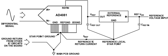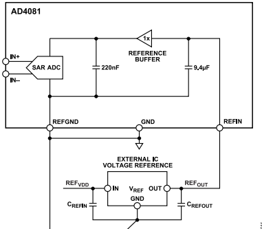 AD4081需要外接3V精密參考電壓,推薦使用LTC6655、LT6657或ADR4530等參考源。器件內部集成了9.4μF的參考去耦電容,簡化了外部電路設計。