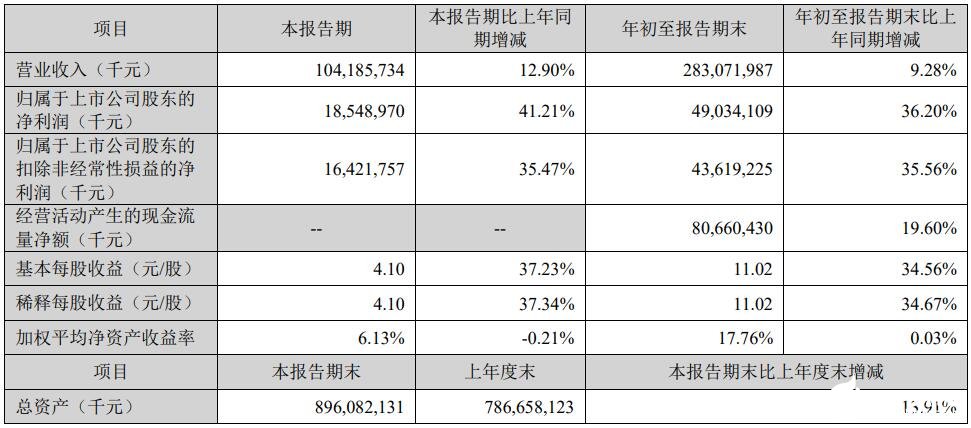 增長(zhǎng)18.94%,凈利潤(rùn)為252.38元,同比增長(zhǎng)18.12%。其中,第三季度表現(xiàn)尤為亮眼,營(yíng)業(yè)收入達(dá)到2011.25元,同比增長(zhǎng)24.04%,