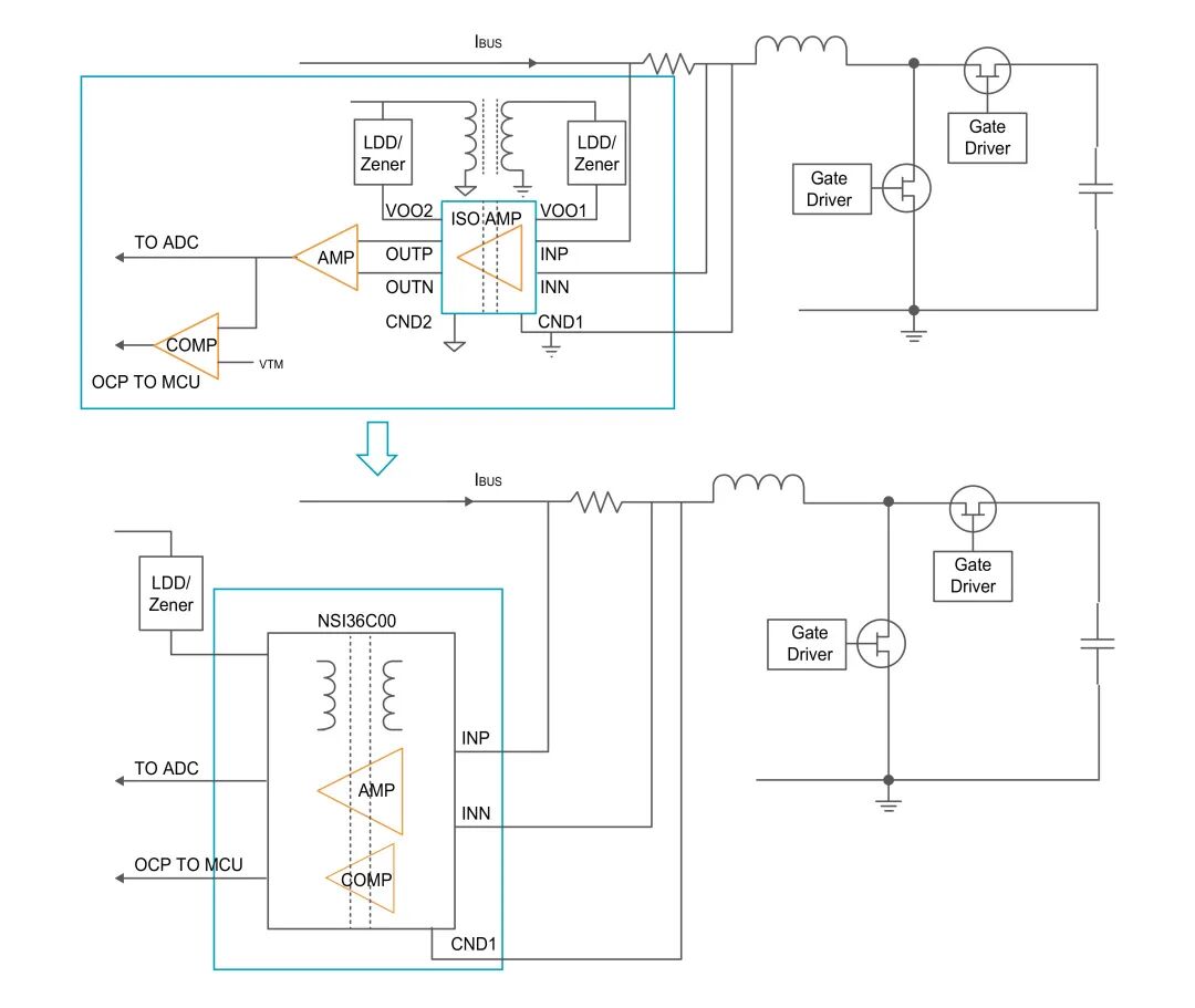 NSI36xx系列可廣泛用于工業(yè)電機驅(qū)動、光伏逆變器、服務(wù)器電源、新能源汽車主驅(qū)、車載充電機等高壓系統(tǒng)的電流、電壓采樣,通過集成隔離電源、靈活的輸出配置和內(nèi)置保護功能,幫助工程師在系統(tǒng)設(shè)計中支持更高的功率密度,并簡化外圍電路。