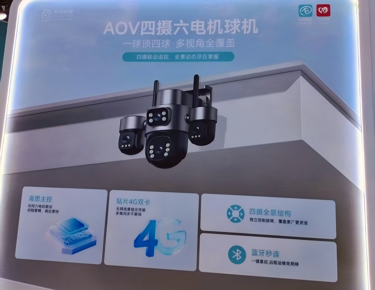 此次展會(huì),維拍物聯(lián)展出的AOV四攝六電機(jī)球機(jī),一球頂四球,實(shí)現(xiàn)多視角覆蓋,該產(chǎn)品采用海思主控,協(xié)同六電機(jī)聯(lián)動(dòng),控制更精,響應(yīng)更快;采用貼片4G雙卡,無(wú)網(wǎng)場(chǎng)景可以穩(wěn)定傳輸,多角同步不斷線;四攝全景結(jié)構(gòu),獨(dú)立控制旋轉(zhuǎn),覆蓋更廣更靈活;藍(lán)牙秒連,一鍵重啟,遠(yuǎn)程運(yùn)維面爬梯。