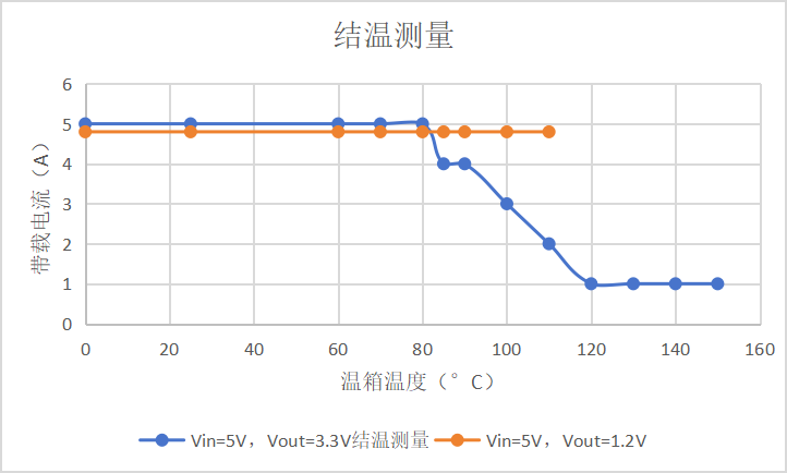 測(cè)試小結(jié)明確指出:"Vout=3.3V/5A輸出100℃環(huán)境溫度出現(xiàn)保護(hù),在負(fù)載隨溫度上升帶載不斷降低到Vout=3.3V/1A可以通過150℃高溫測(cè)試"。這表明過熱保護(hù)閾值約為100℃環(huán)境溫度,對(duì)應(yīng)結(jié)溫可能達(dá)到125-130℃,與數(shù)據(jù)手冊(cè)標(biāo)稱125℃最高結(jié)溫基本吻合。