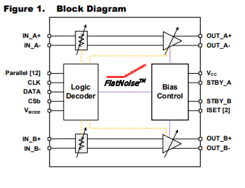 典型最大增益為20dB,增益控制范圍達(dá)到31.5dB,可通過6位串行或并行控制實(shí)現(xiàn)0.5dB的增益步長。