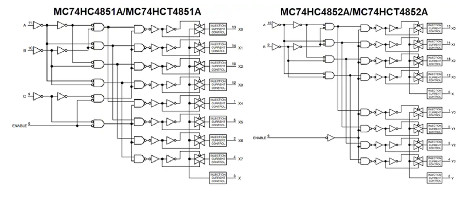在電子設(shè)計領(lǐng)域,模擬復(fù)用器和解復(fù)用器是至關(guān)重要的組件,它們在信號切換和選擇方面發(fā)揮著關(guān)鍵作用。今天,我們將深入探討安森美(onsemi)的一系列模擬復(fù)用器和解復(fù)用器,包括MC74HC4851A、MC74HC4852A、MC74HCT4851A和MC74HCT4852A,這些器件具有獨(dú)特的注入電流效應(yīng)控制功能,為電子工程師帶來了新的設(shè)計思路和解決方案。