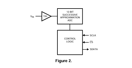 The ADC121S051 is a low-power, single channel CMOS 12-bit analog-to-digital converter with a