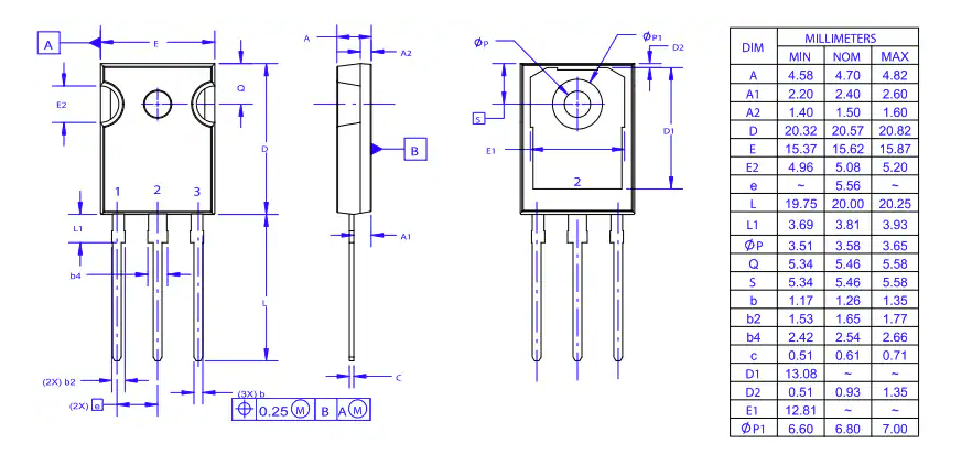 NVHL060N065SC1 采用 TO - 247 - 3L 封裝,文檔中詳細給出了封裝的各項尺寸參數。準確了解封裝尺寸對于 PCB 布局設計至關重要,合理的布局可以保證器件的散熱和電氣性能。在進行 PCB 設計時,大家是否會仔細核對封裝尺寸,以避免出現安裝和性能問題呢?