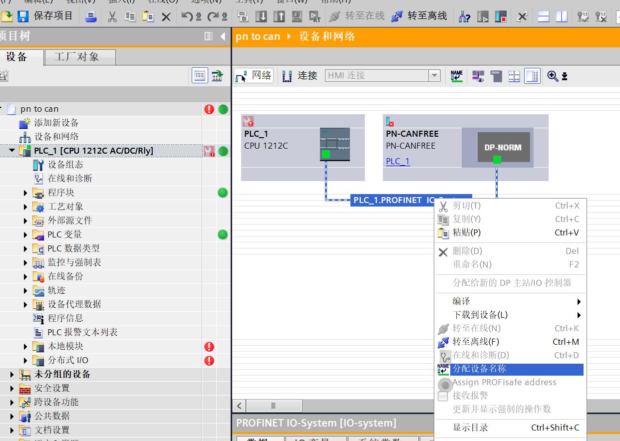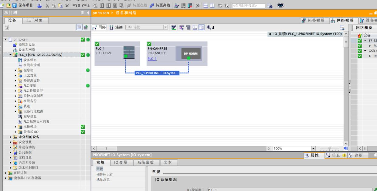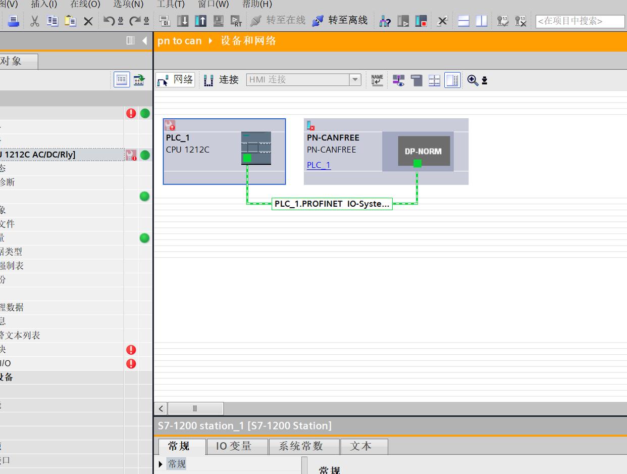- 在網(wǎng)絡(luò)視圖中點(diǎn)擊Profinet轉(zhuǎn)Can網(wǎng)關(guān)至組態(tài)
